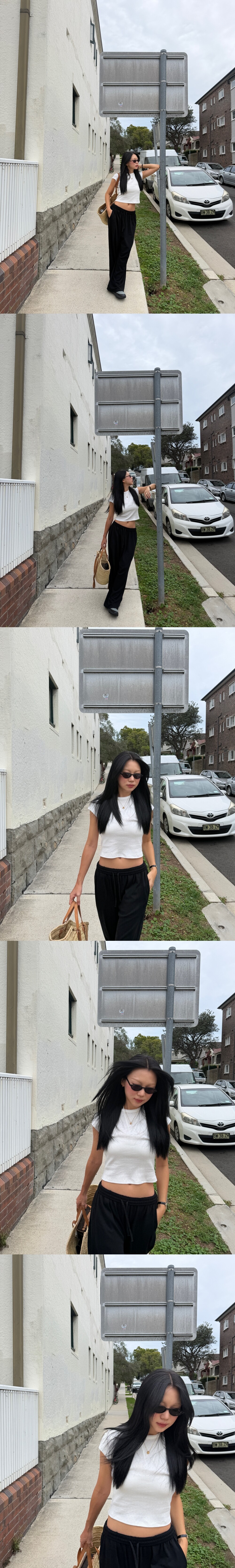이런 귀여우면서 크롭한 티셔츠는 한 끗 차이로 저렴해보일 수 있기에