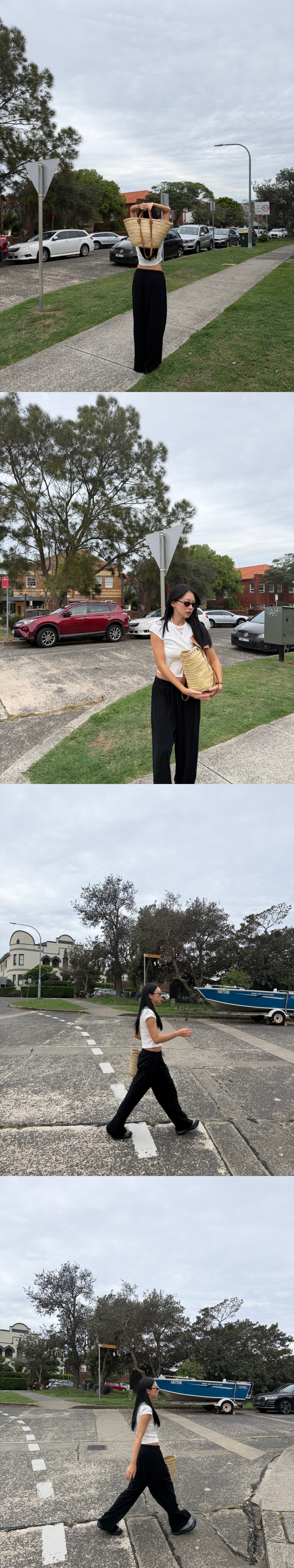 하이 라이즈 팬츠를 입으면 평범한 기장감으로 느껴집니다