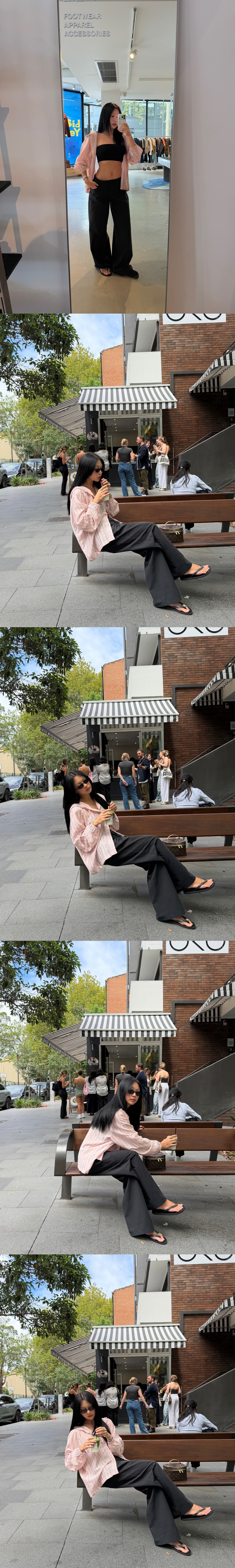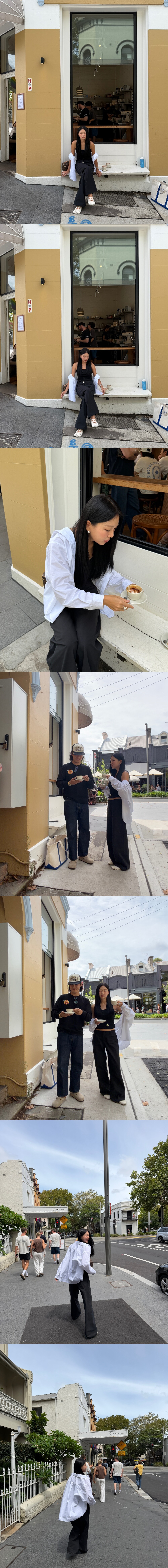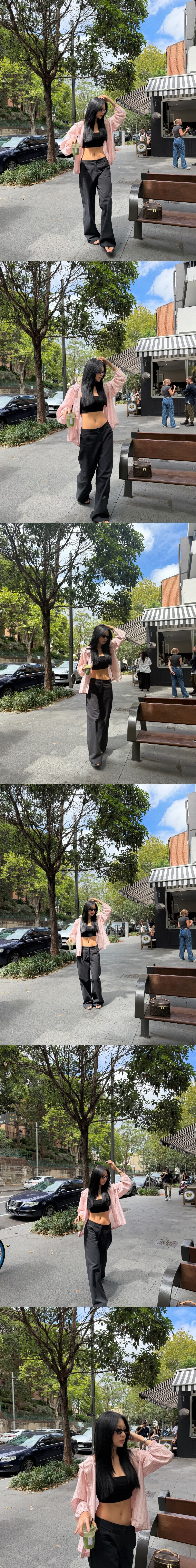 기본 티셔츠를 입는다면 로우 라이즈인가? 싶을 만큼의 허리 선을 유지하고 있습니다