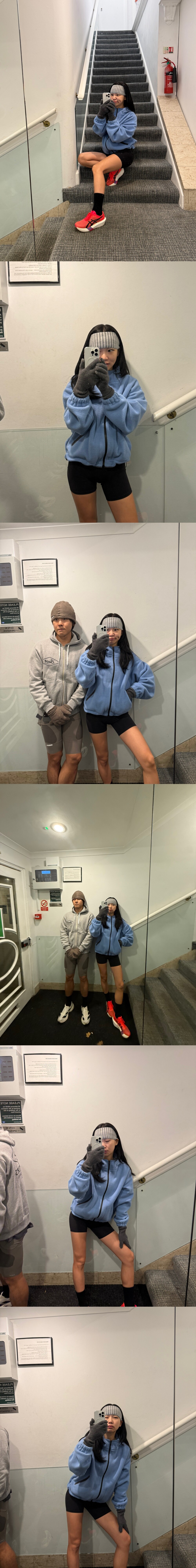 전체적으로 사랑스러운 디자인이지만 아웃도어 느낌이 드는 모자로 운동시에도 잘 어우러집니다
