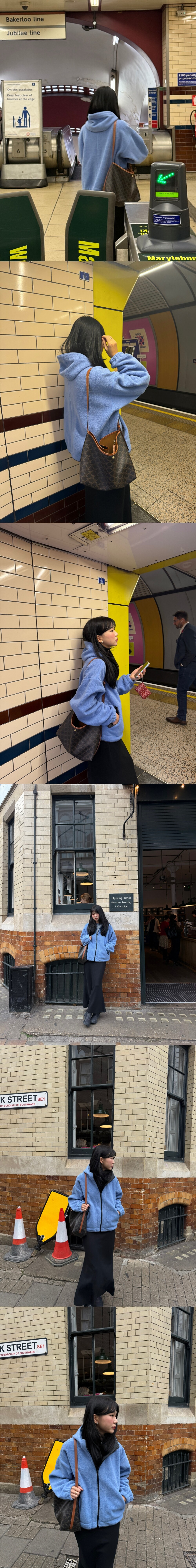 셀리앤리옹 플리스 주머니 시그니처 라인 그대로 사선으로 두어