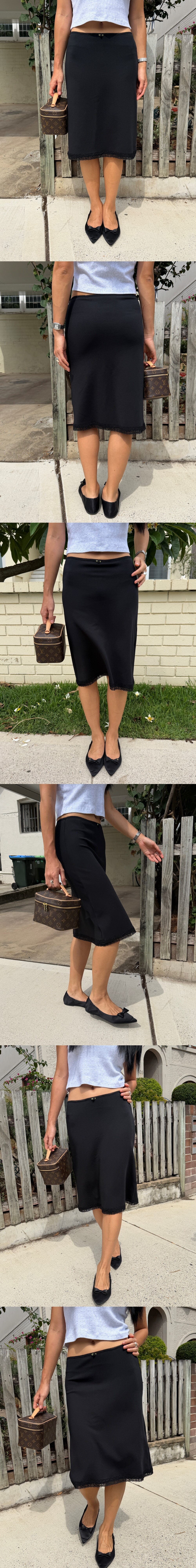 레이스와 장미가 깃들여진 미디 스커트 입니다