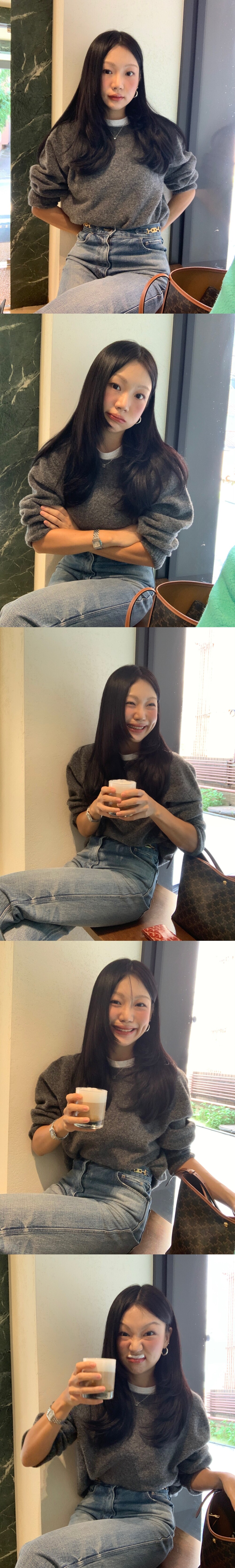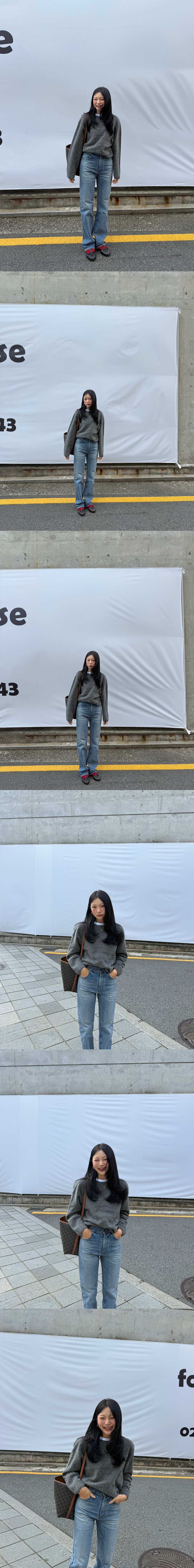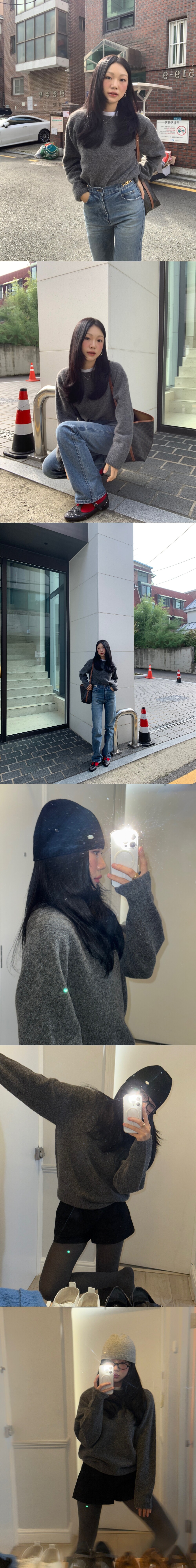 개인적으론 겨울 니트는 단독보단 티셔츠 넥 라인이 살짝 보이는 것을 추구하여