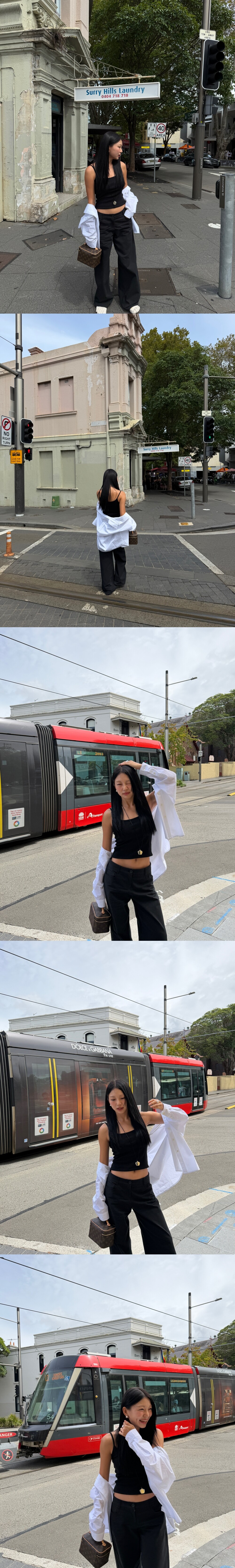 워낙 루즈 핏이다보니 단추를 클로징 했을 때에는 하의가 슬림해야 조화가 좋답니다