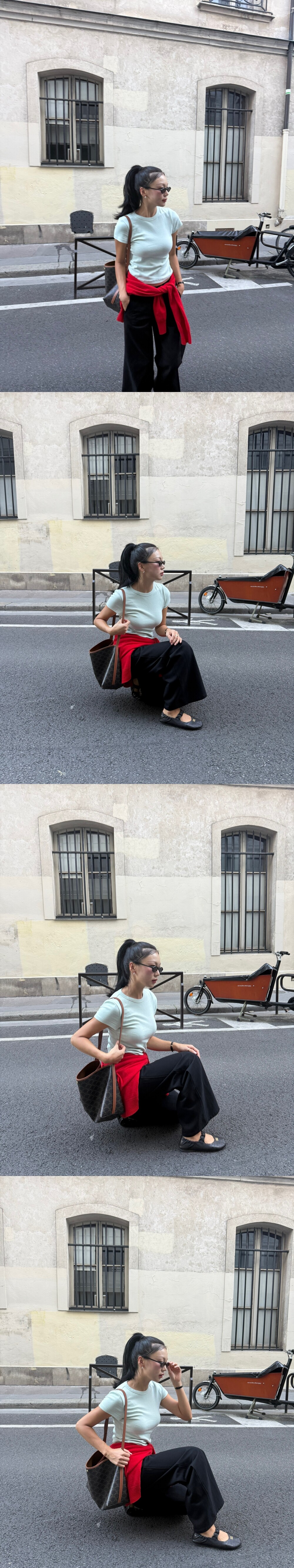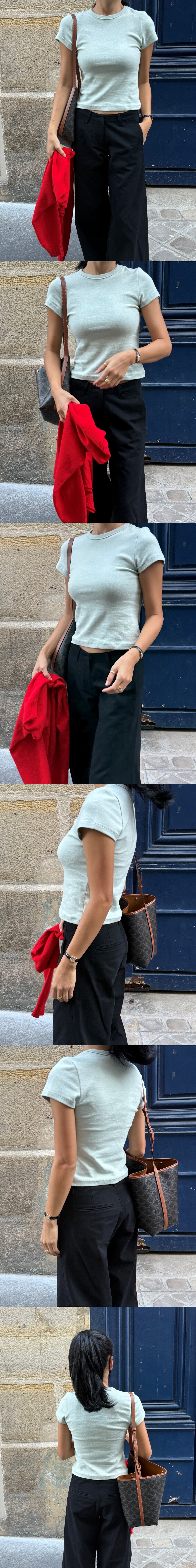 몸을 부드럽게 감싸주며 라인을 예쁘게 보여주는 티셔츠 입니다