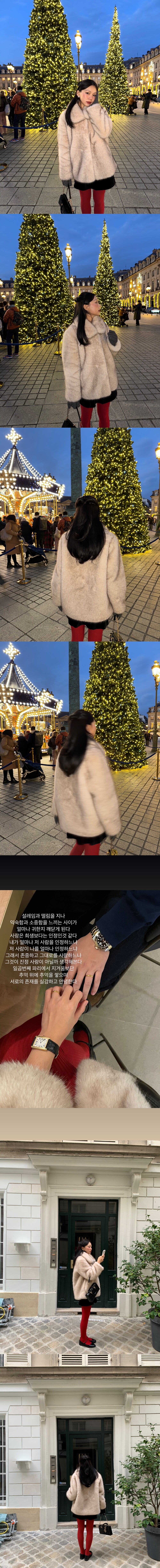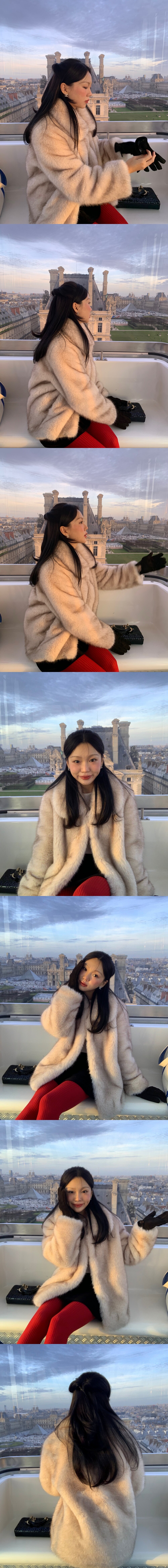 셀리앤리옹의 퍼 자켓 킥은 카라 모양과 크기 입니다