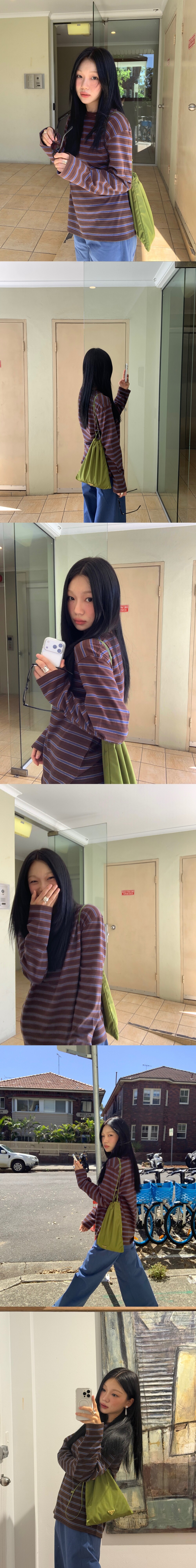 탄탄하면서도 부드러운 촉감인 스트라이프 롱 슬리브 입니다