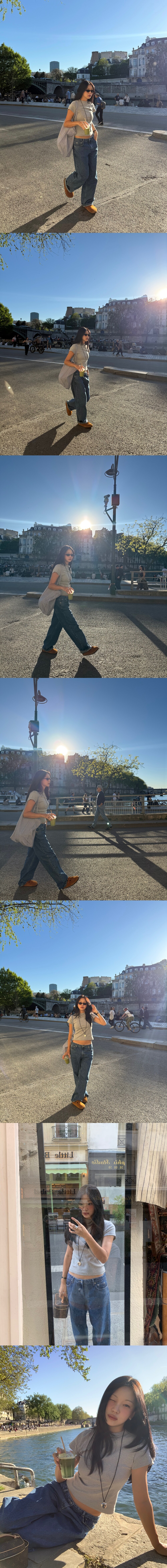 007 티셔츠를 같이 매치해주세요 (배가 아주 살짝만 보입니다)