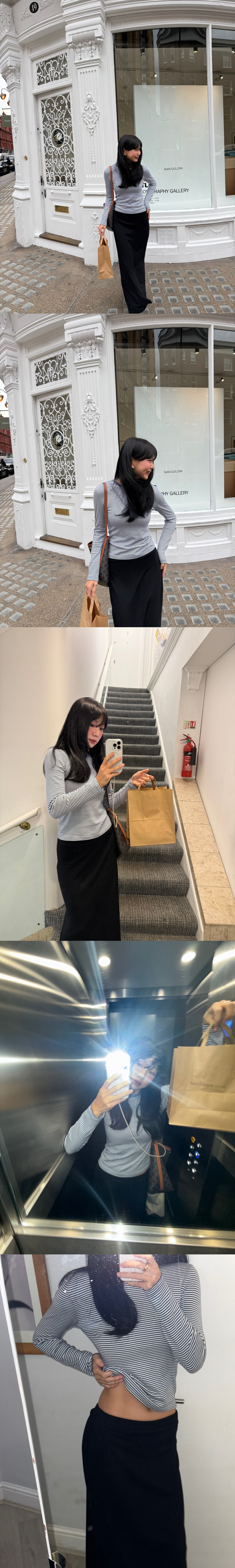 엉덩이 라인이 부담스러우시다면 상의 밑단을 내어서 입어주세요